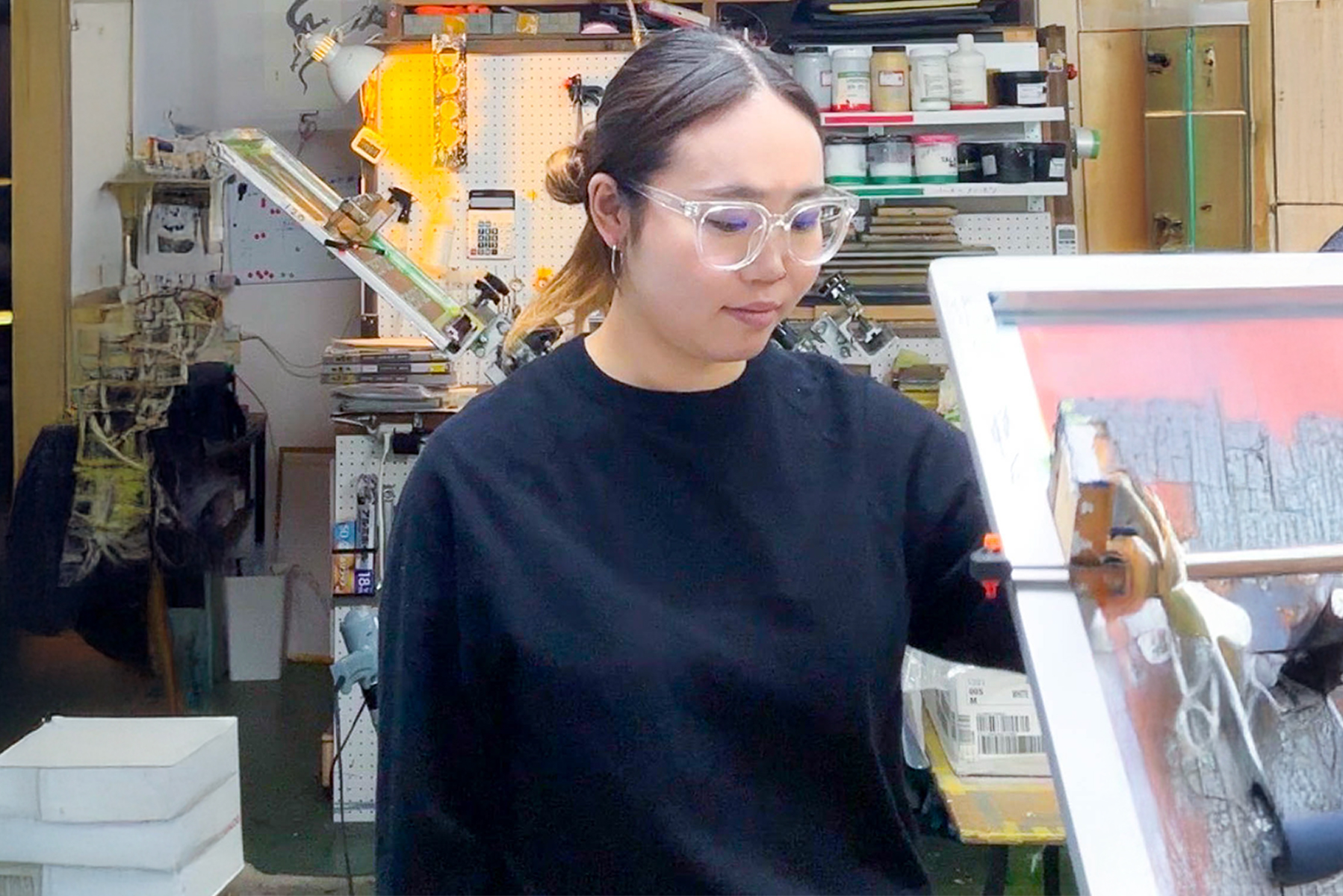現在は、シルクスクリーン印刷の現場で、印刷物の取手や梱包、発送作業などの業務を担当し、シルクスクリーン印刷を日々研鑽を積んでいます。