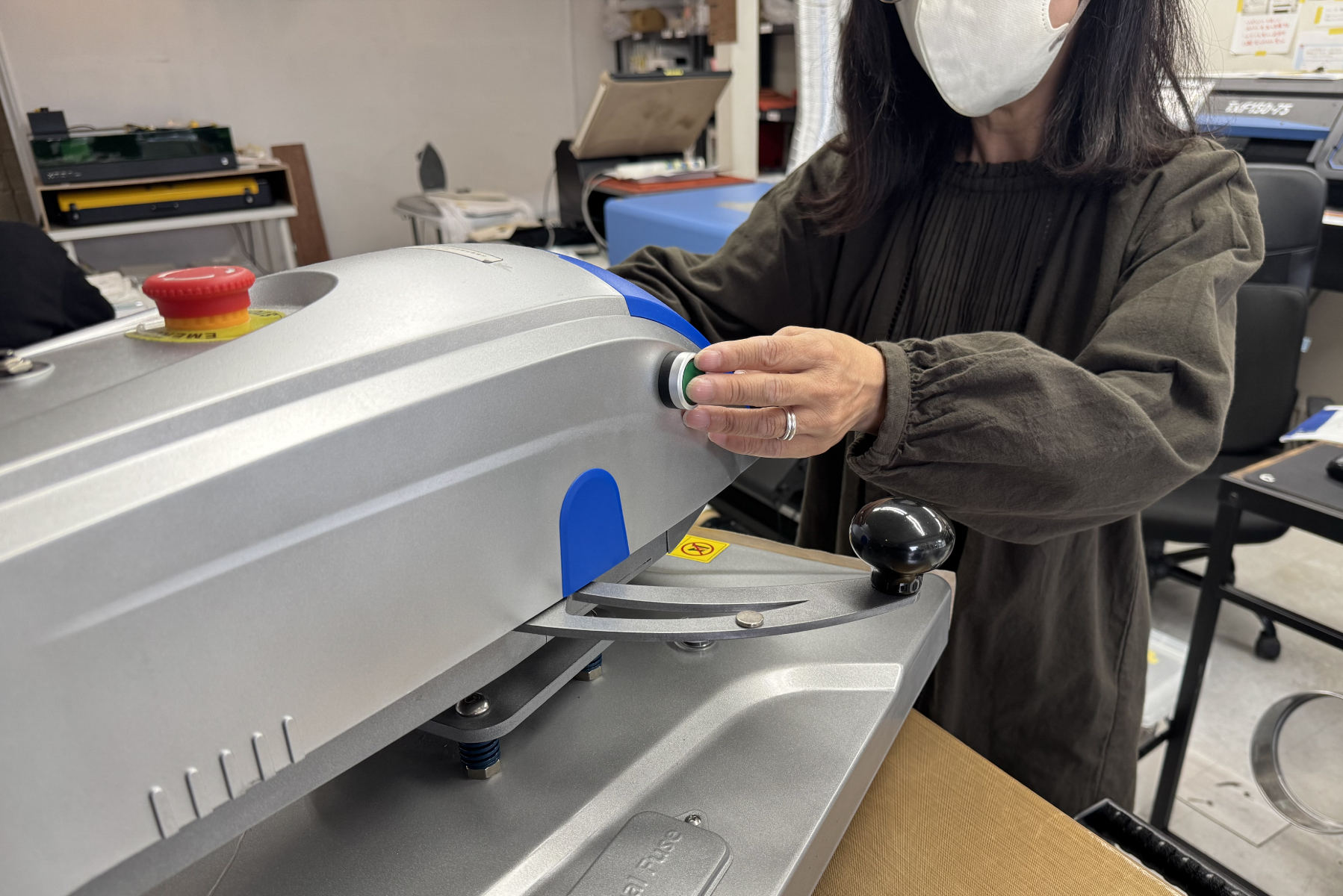 まだ学ぶことも多いですが、プレスの印刷補助や縫製の仕事に日々取り組んでいます。